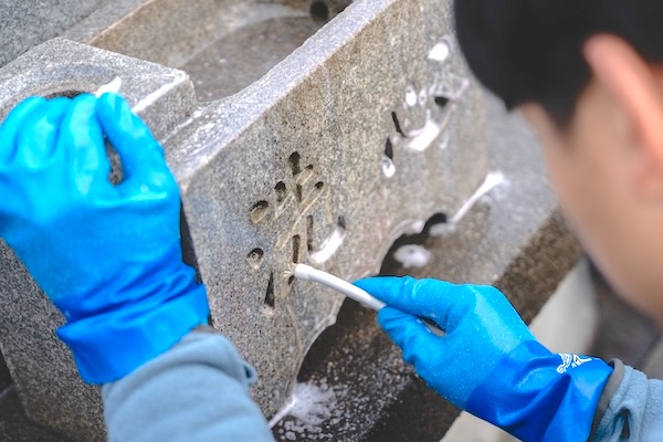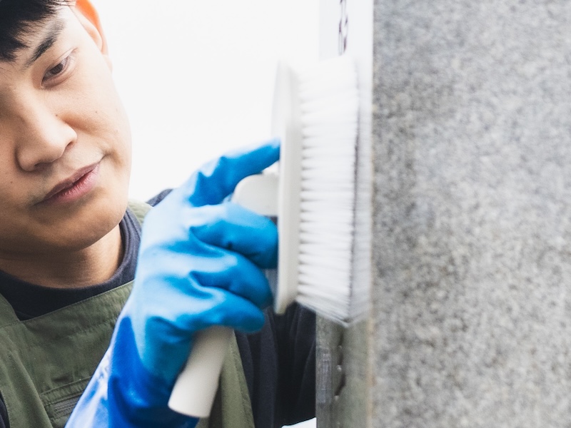 墓石の状態に合わせて一つひとつ丁寧に。“想いを込めて整える”ことを大切にしています。